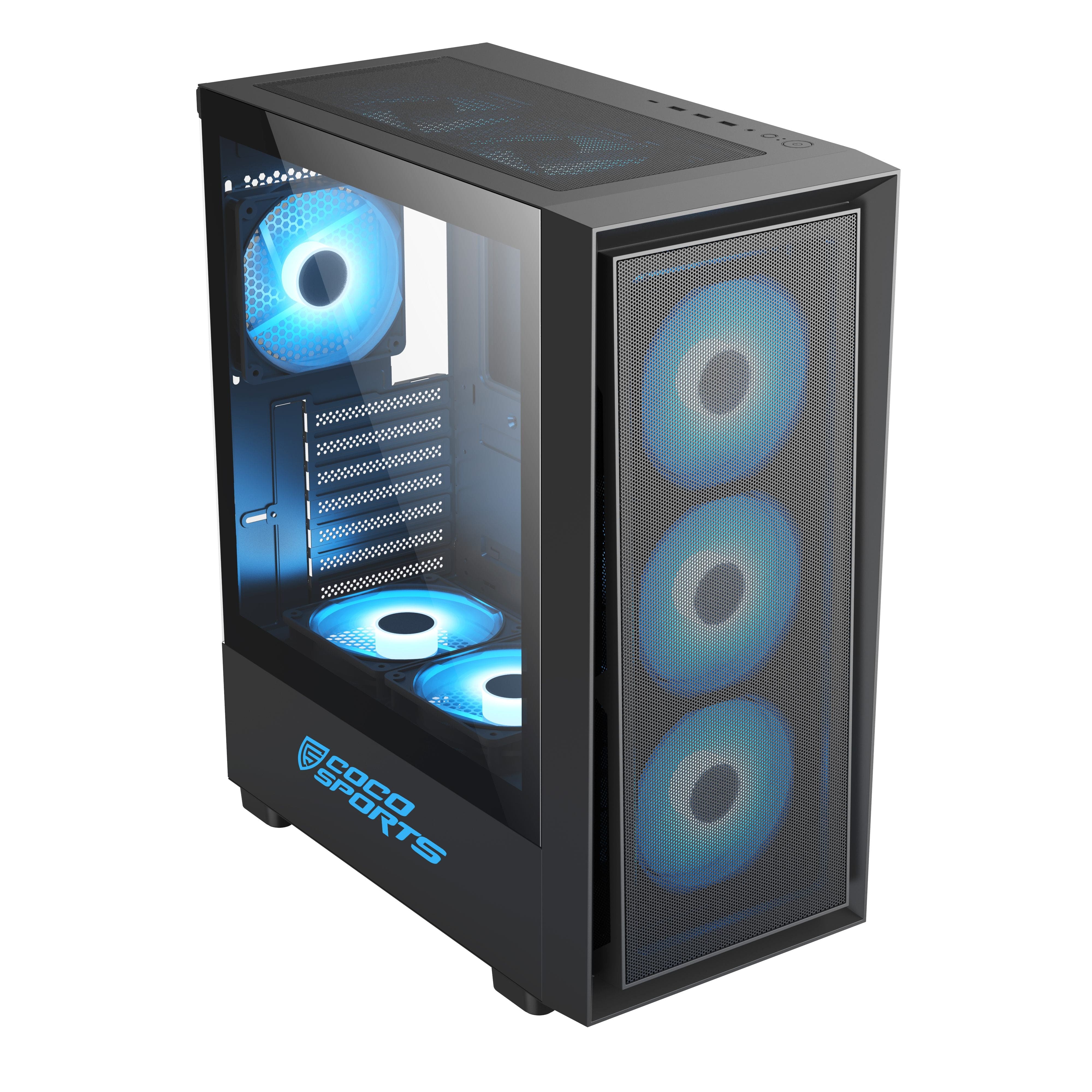 Rampage 2000D Gaming Cabinet, E ATX - Black Pre Loaded 4x120mm ARGB Fan, Metal Mesh Front Panel