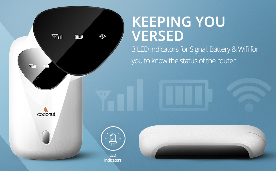 - LED INDICATORS : There are 3 LED indicators for Signal, Battery & Wifi for you to know how the 4G Portable Hotspot running