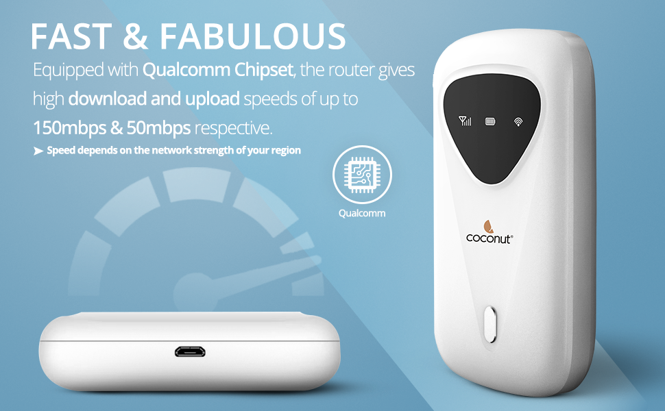 Qualcomm Chipset, All SIM Support, Modern Design, LED Indicators, Perfect for Travelling, High Internet Speeds upto 150Mbps, upto 8 devices