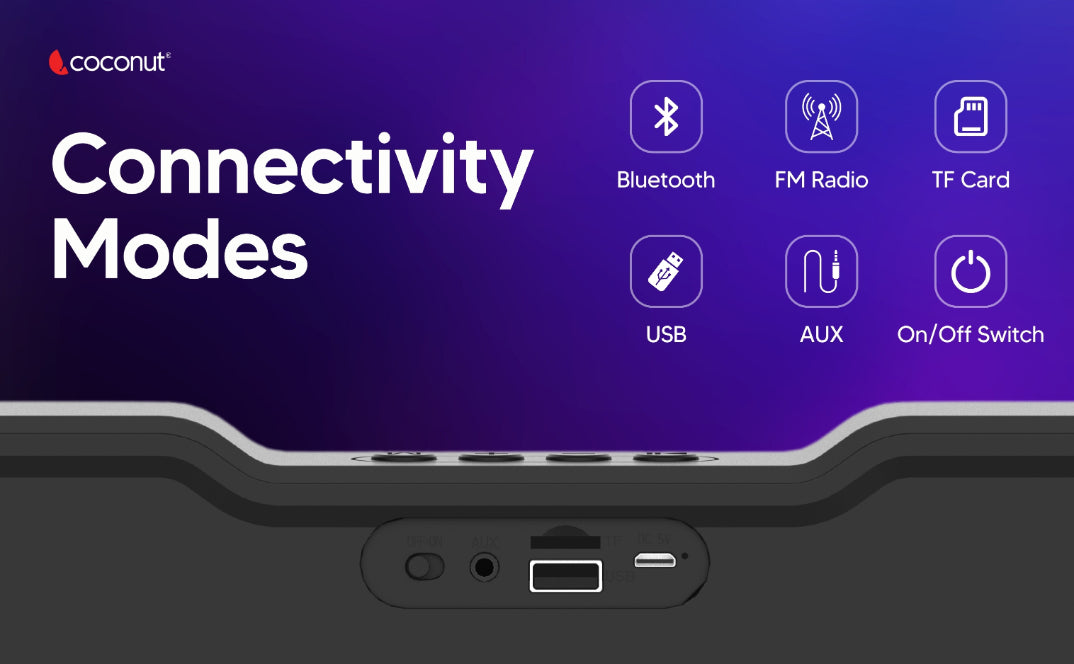 - MULTIPLE INPUT SOURCES : An array of options to connect your portable speaker to - Bluetooth, FM, Aux, TF/SD Card.