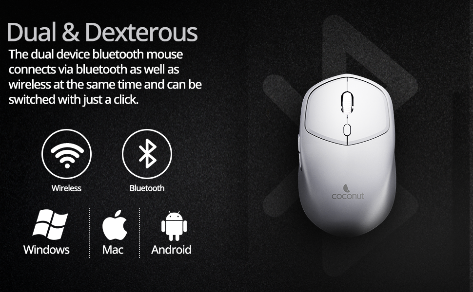 MULTI DEVICE MOUSE : The WM27 Jade wireless mouse is a classic dual device Bluetooth mouse, connect via Bluetooth as well as wireless at the same time and can be switched by just a click