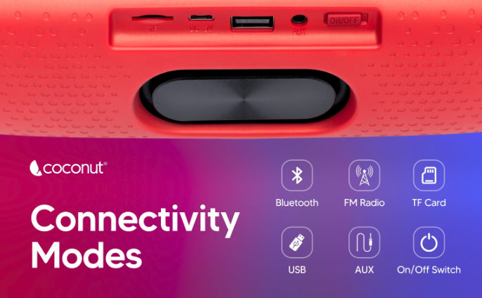 - MULTIPLE INPUT SOURCES : An array of options to connect your portable speaker to - Bluetooth, FM, Aux, TF/SD Card, USB Pendrive