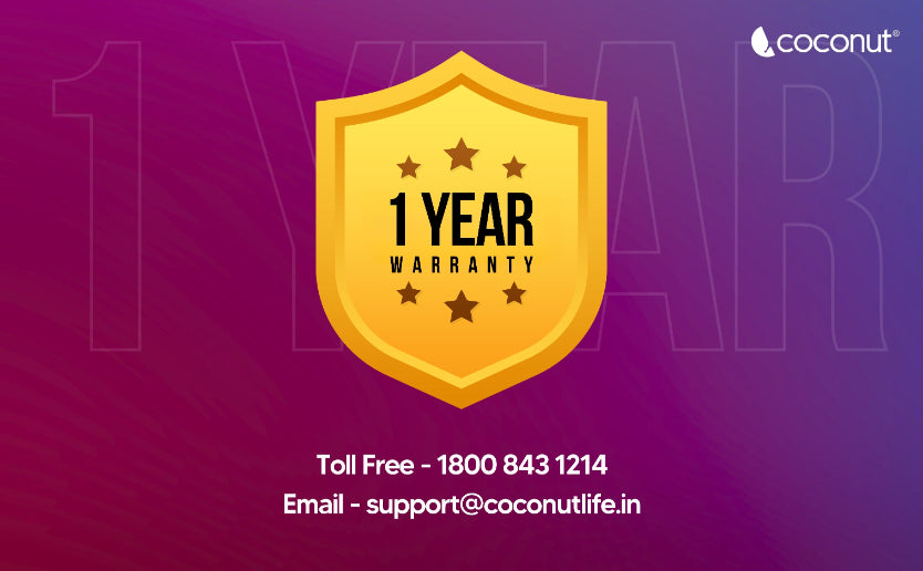1 YEARS WARRANTY : Coconut provides a 1 Year Warranty . Toll Free - 1800 843 1214 , Email - support@coconutlife.in