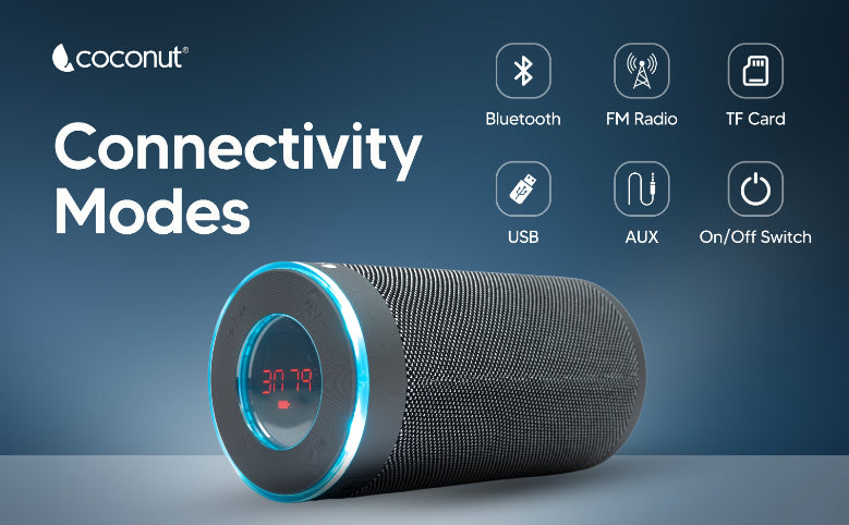 - MULTIPLE INPUT SOURCES : An array of options to connect your portable speaker to - Bluetooth, FM, Aux, TF/SD Card, USB Pendrive