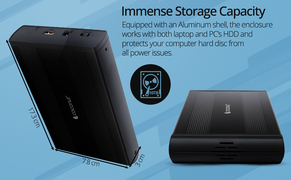 - UPTO 10TB PORTABLE HDD This External Hard Disc Case can take upto 10TB (SATA) Portable HDD, thus giving you room for plenty of storage