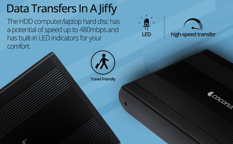 - SUPER SPEED DATA TRANSFERS The USB 2.0 SATA HDD computer laptop hard disc has a potential of speeds upto 480 mbps, and has built-in LED indicators for your comfort