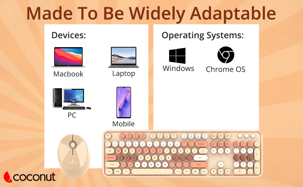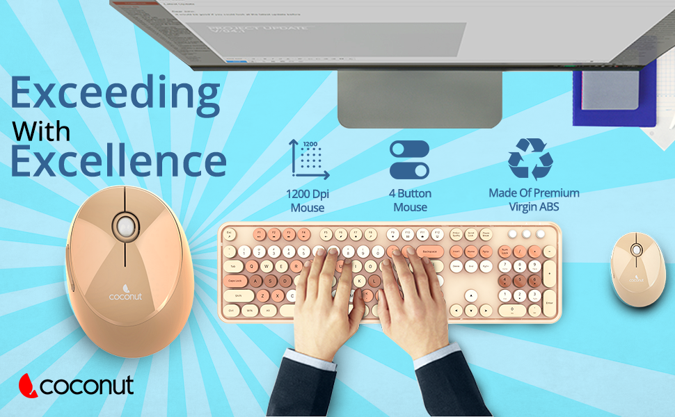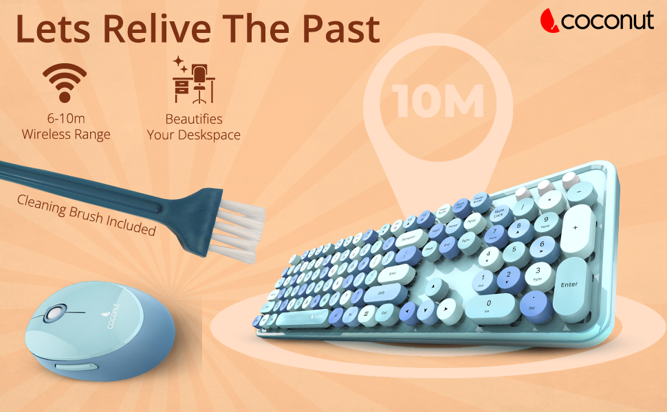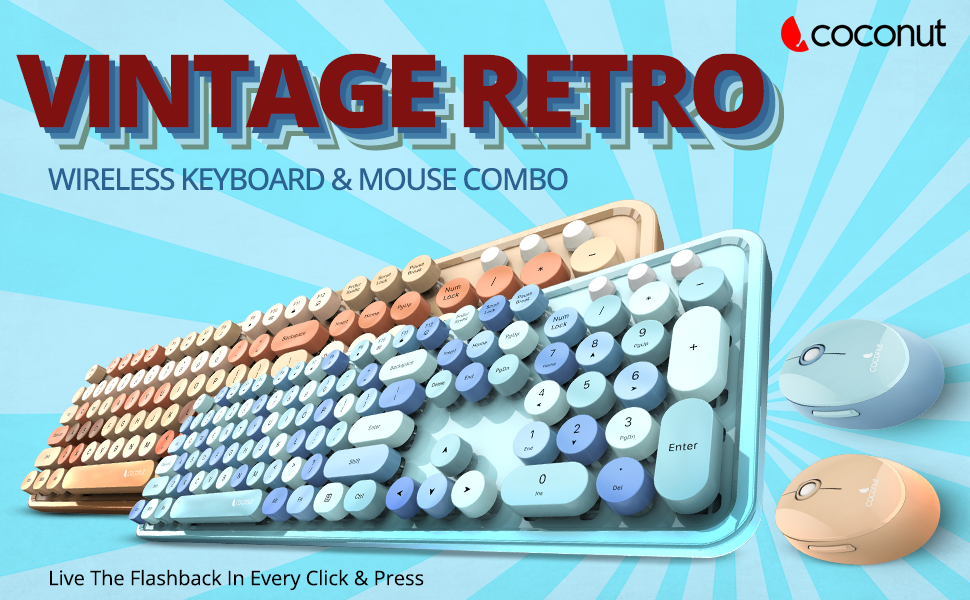 - WIRELESS KEYBOARD AND MOUSE : Coconut brings you Vintage 2.4Ghz Wireless Keyboard and mouse combo with rounded keys giving you a retro look.