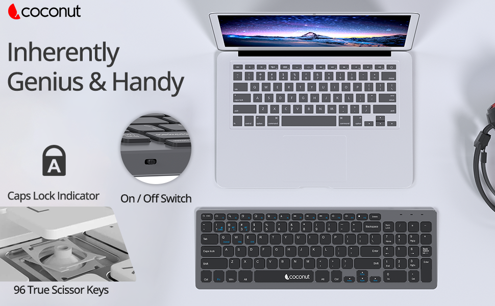 - On/Off Switch, Caps Lock Indicator, True 96 Scissor Keys: With the Coconut Wonder, you get convenient features like an on/off switch, Caps Lock indicator, and true 96 scissor keys for precise typing.
