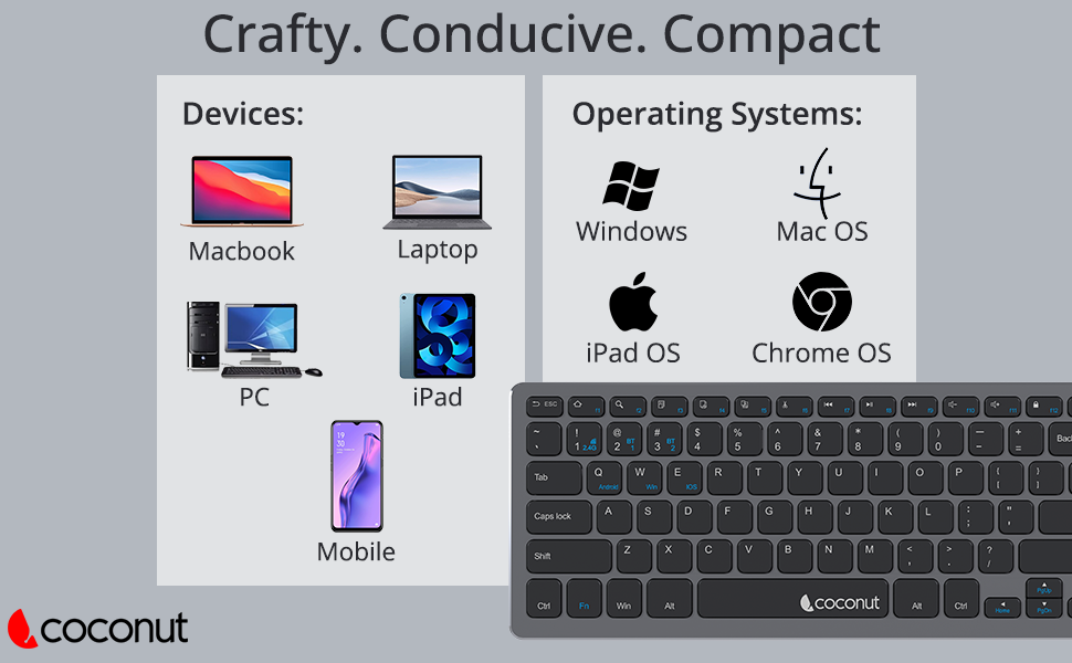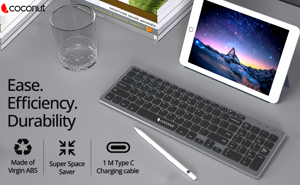 - Sleep Mode and Low Battery Indicator: The Coconut Wonder keyboard automatically enters sleep mode to save battery when not in use and alerts you when battery levels are low, ensuring uninterrupted usage.