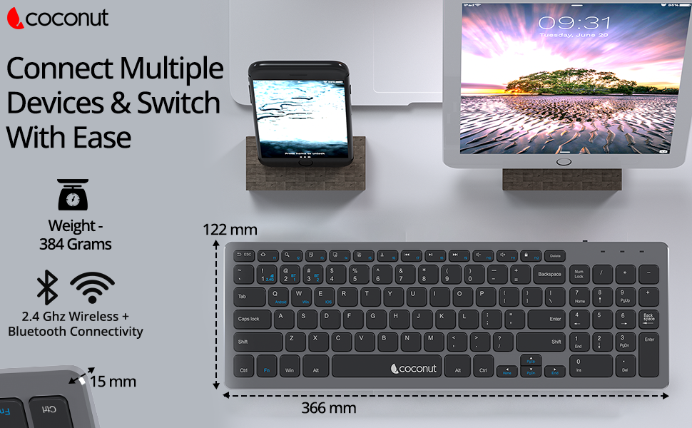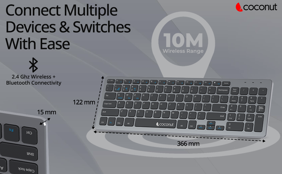 - Coconut Wonder Wireless Keyboard: Enjoy the Coconut Wonder's versatility with Bluetooth and WiFi connectivity, allowing seamless typing across multiple devices.