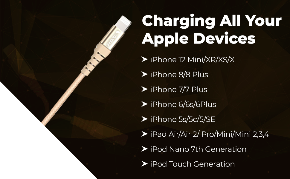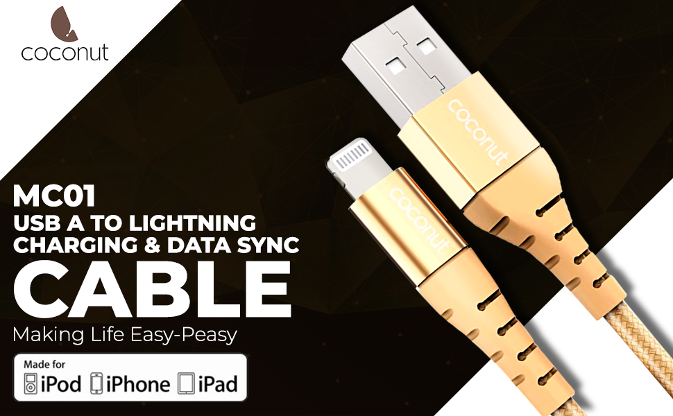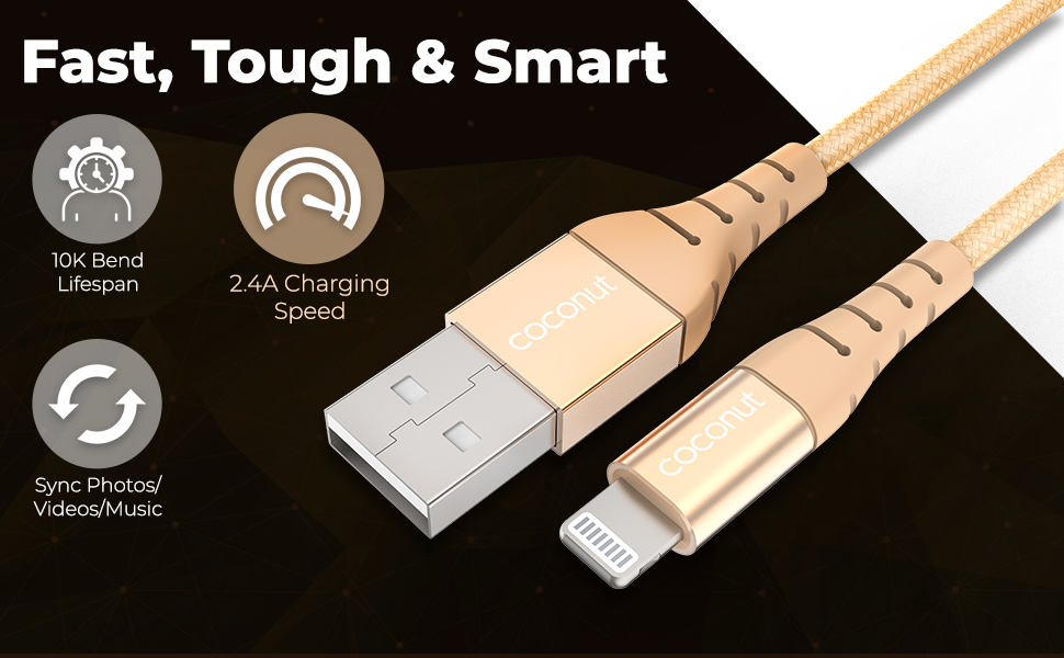 MFI CERTIFIED CABLE : Coconut brings you MFi certified iPhone charging cable assuring Fast, Safe and Reliable charging and data transfer for all your Apple devices like iPhone 12 (Made for iPhone/iPad/iPod)