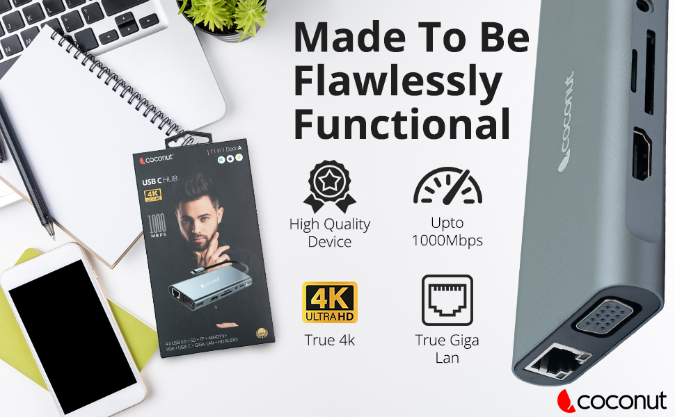 - Giga Lan Port : Experience upto 1000 Mpbs Internet speeds with the Giga Lan Port on this multi port hub