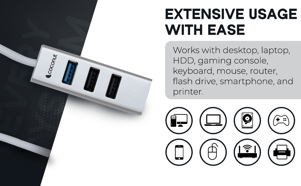 - 1 YEAR WARRANTY : Coconut Provides you a 1 year warranty on this SuperSpeed 4 Port USB Hub