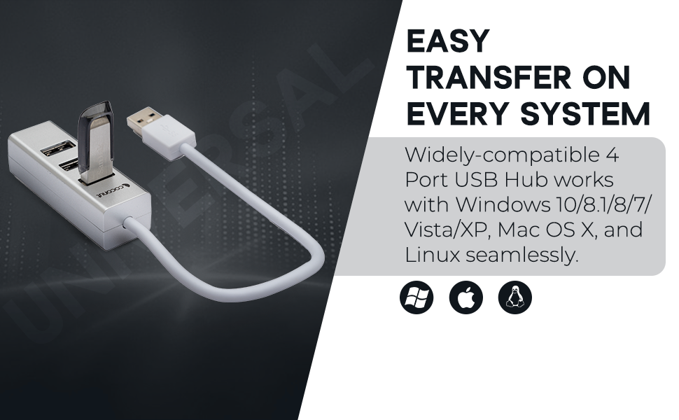 WIDE COMPATIBILITY : Coconut 4 Port USB Hub gives you a Driver-free support on Windows 10/8.1/8/7/Vista/XP and Mac OS X, Linux