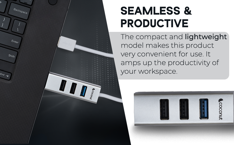 PORTABLE DESIGN : The Coconut UH11 USB Hub has a superslim and compact design, that you can carry it any where with you and get work done