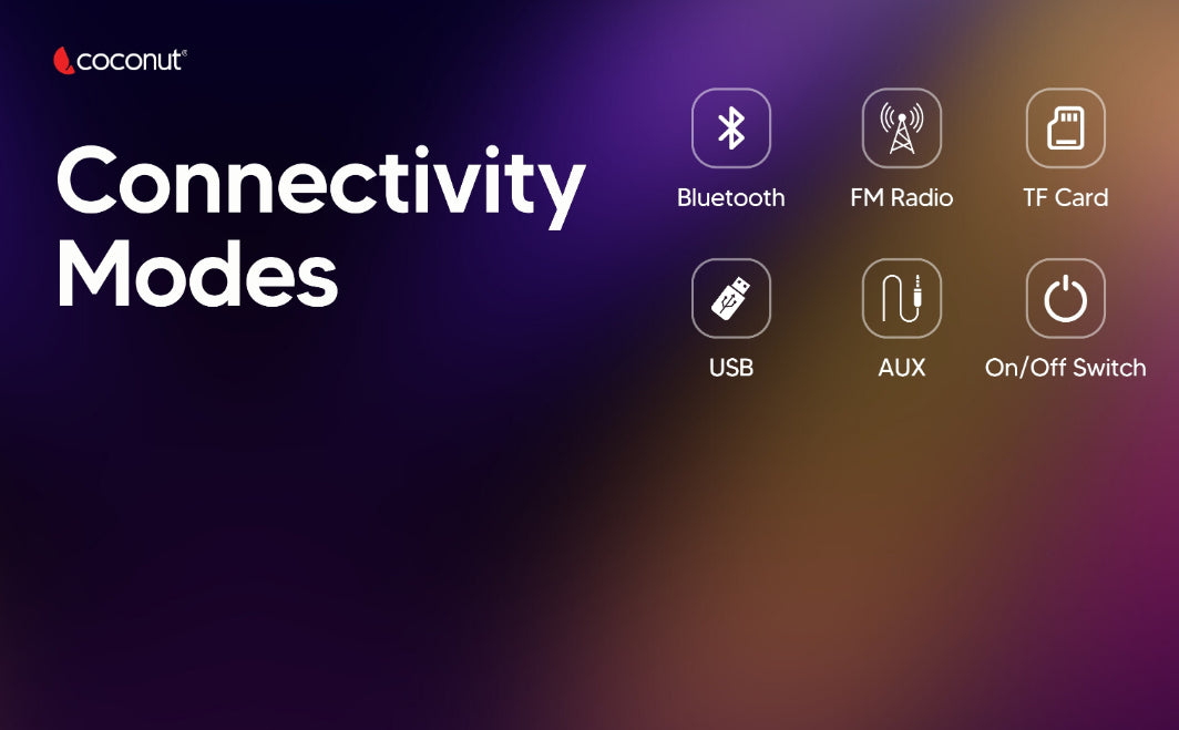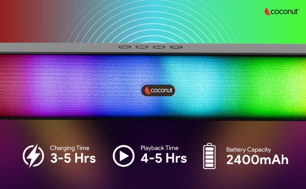 The Stanza RGB 16W Wireless SoundBar pumps out 🔊 bangers with 16 watts of 💪! Get up to 4-5 hours of bop-a-long 🎶 when the 2400 mAh battery is 💯. 🤩 RGB light effects come alive with just 3-5 hours of charging time. Go wireless with connection options galore: Bluetooth, FM Radio, and TF Card 🤙