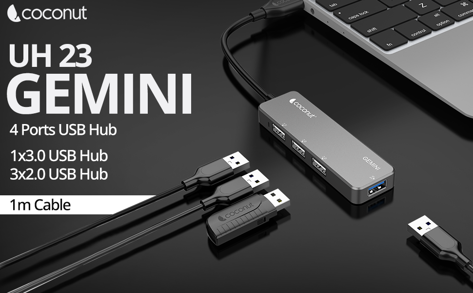 The UH23 Gemini 4 Port USB Hub provides industry-standard USB connection for up to 4 devices. With one USB 3.0 port and three USB 2.0 ports, this hub supports high-speed data transfer up to 5 Gbps. Plug and play with its 1 meter cable, you can easily connect two data devices and enjoy worry-free connections with its 1 year warranty. 💻👩💻